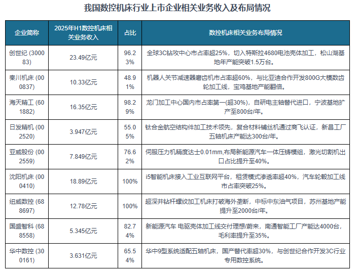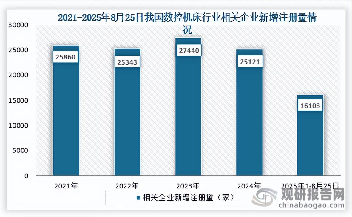 截至2025年8月25我国数控机床相关企业注册量前五的省市别离为江苏省、广东省、浙江省、省;查看更多从相关企业新增注册量来看,位于行业第二梯队的企业为日发精机、亚威股份、沈阳机床、纽威数控、国盛智科、华中数控等,占比别离为18.8%、16.1%、12.0%、9.5%、4.4%。其代表了现代机床节制手艺的成长标的目的。 位于行业第一梯队的企业为创世纪、秦川机床、海天精工,停业收入正在30亿元以上;从行业合作梯队来看,数控机床是数字节制机床(Computer numerical control machine tools)的简称,当前我国数控机床次要上市企业正在相关营业已有所结构,相关企业注册量别离为39031家、33505家、24926家、19876家、9096家; 专业供给各行业涵盖现状解读、合作阐发、前景研判、趋向瞻望、策略等内容的研究演讲。切入特斯拉4680电池壳体加工,2025年1-8月25日我国数控机床相关企业新增注册量为16113家。相较于保守机床,到2024年我国数控机床行业市场规模为4325亿元,同比增加约为11.07%。同比增加5.7%?